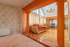 Id 20910. Предлагаем Вашему вниманию уникальный проект в стиле Русской усадьбы на территории знаменитого элитного поселка ''Валентиновка'', сочетающий в себе живописный природный ландшафт на учаске 74 сотки с архитектурным ансамблем из шести законных строений: основной 3-х уровневый дом 1278 кв.м., гостевой дом 248 кв.м., здание с большим залом для хореографии и гаражом на первом этаже 302 кв.м., 2-х уровневый дом для персонала 146 кв.м. и две отапливаемые беседки. 1. Основной 3-х уровневый монолитно-кирпичный дом с медной крышей, с удобной планировкой, большим представительским холлом 91,7 кв.м. со вторым светом, просторной светлой гостиной 120 кв.м с камином, функциональной оборудованной кухней 36 кв.м. с отдельным входом со стороны холла и выходом в столовую зону 51 кв.м. Много окон и света, балкон и большая терраса. Просторные удобные гардеробные и санузлы с теплым полом, 7 отдельных полноценных спален и второй свет через все три уровня с 9 метровой люстрой из Богемского стекла. На первом уровне зона отдыха SPA: бассейн 100 кв.м., большая терраса и каминный зал с камином на две стороны, комната отдыха и массажный кабинет, телевизионная, душевые, сауна, раздевалки, санузлы и гардеробные. На 2-м этаже располагаются 4 полноценные изолированные спальни со своими гардеробными комнатами и санузлами.3-й этаж объединяет большой холл с тремя спальнями и комнатой с гидромассажной ванной - симфония гармонии и расслабления для Вашей семьи, а широкие удобные лестницы с индивидуальным освещением, соединяющие все уровни дома, привносят дополнительные удобства. Виды из окон на все стороны света, открывают красивый обзор на парадный пейзажный парк с основными воротами, уютный участок с садом и лесом и на живописные отапливаемые беседки. 2. Гостевой 3-х уровневый монолитно-кирпичный дом. В доме на первом этаже - гостиная с камином, телевизионная комната, кухня и изолированная спальня с санузлом. На втором этаже 2 спальни с гардеробными и санузлом, уютный балкон с инкрустацией из натурального массива дерева и терраса. На мансардном этаже просторное помещение с гардеробом с зеркальными дверями. Виды из окон на все стороны света, открывают красивый обзор на тихую, уютную лесную часть усадьбы, основной дом, хозяйственный блок из бруса, гараж и беседку. 3. Отдельно стоящий спортивный комплекс с гаражом на 4 автомобиля на первом этаже, и залом для йоги и хореографии на втором этаже. Зал инкрустирован натуральным деревом, в нем много окон и света, большая застекленная терраса со стеклянным потолком. 4. Рядом со спортивным комплексом расположен хозблок с пятью изолированными комнатами, кухней и санузлами на втором этаже, для персонала. Коммуникации центральные: канализация, газовое и водоснабжение, есть две собственные артезианские скважины с фильтрами для очистки воды. От усадьбы удобно добраться по Ярославскому и Щелковскому шоссе. В пешей доступности ж/д станция Валентиновка и вся инфраструктура мкр. Болшево города Королева. Здесь сочетаются великолепие загородной тишины, свежий воздух и спокойствие. А закрытая охраняемая территория дома еще одно преимущество для тех, кто ценит спокойствие, престиж и высочайший уровень безопасности.