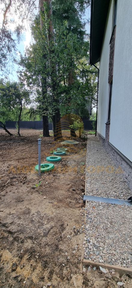 Общий участок на три дома огорожен общим забором, установлены откатные ворота с электроприводом. У каждого собственника отдельный участок под домом + 1/3 доли от общих зон. На общей огороженной территории предусмотрено место для ПАРКОВКИ личного транспорта собственников и гостевая парковка.