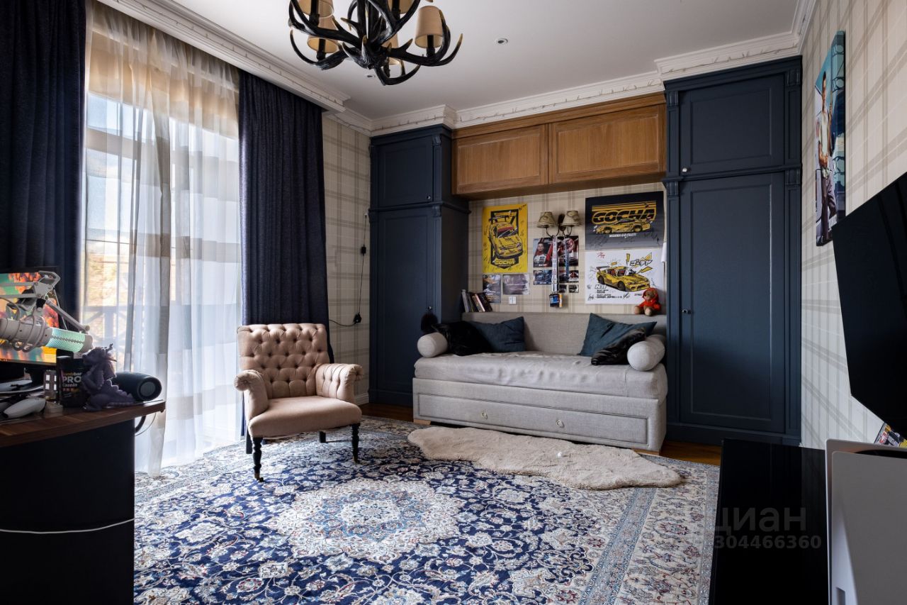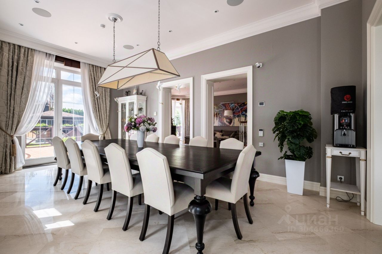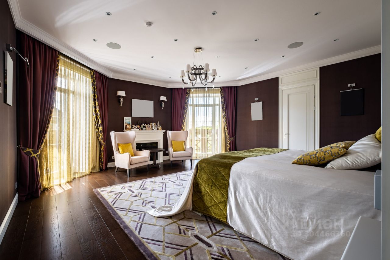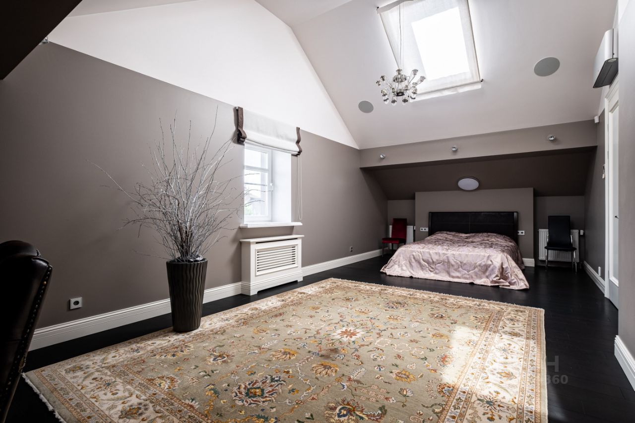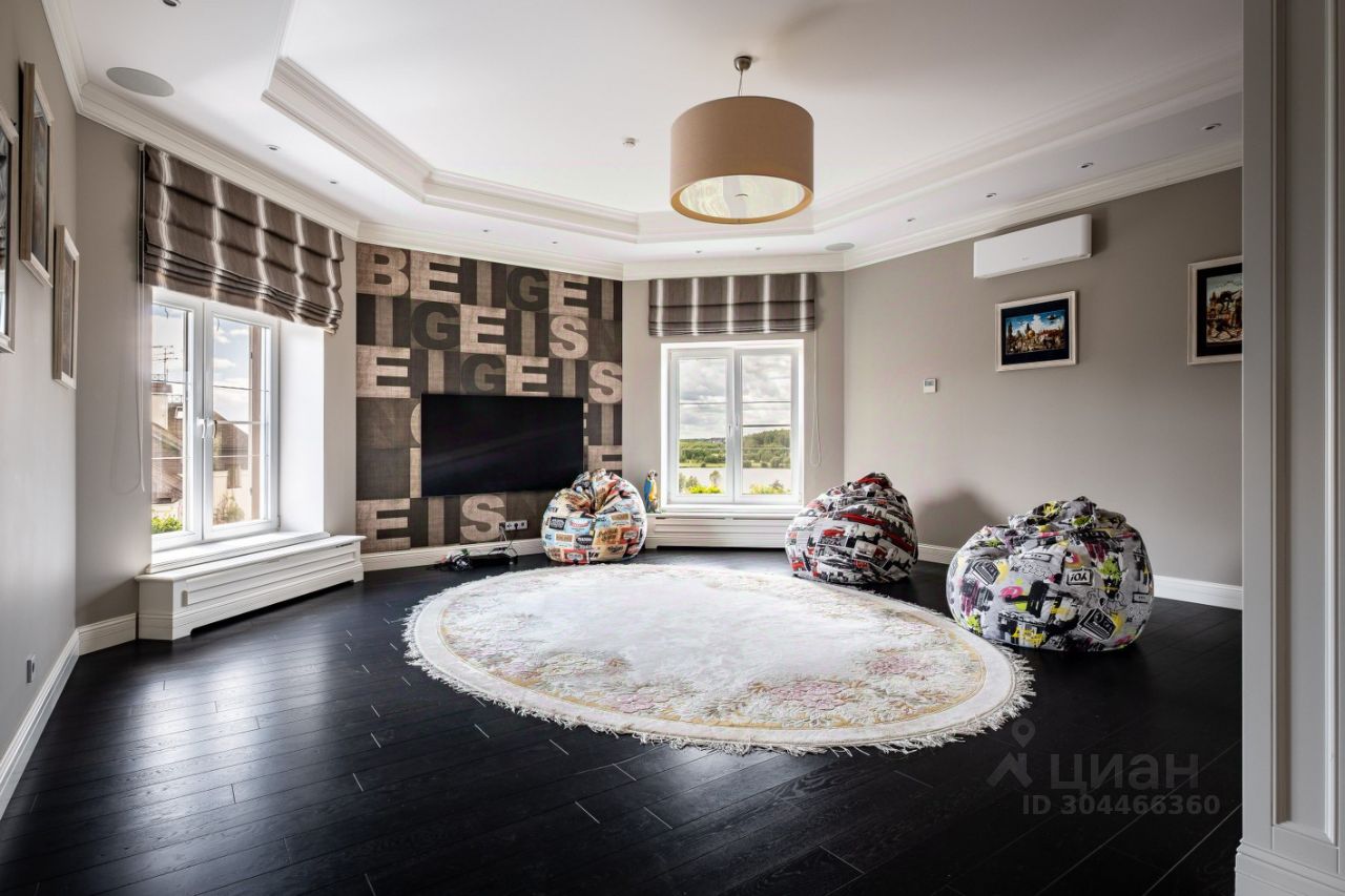 1-й этаж: прихожая с гардеробной, кухня и столовая с выходом на террасу, гостиная с камином и эркером. На первом этаже для гостей две спальни, санузел и гардеробная, 2-й этаж: три детские комнаты 16/15/22 м кв с выходом на балкон, детский санузел. Мастер-спальня с гардеробной и ванной комнататой, с невероятным видом на озеро и гольфполя, кабинет со вторым светом. 3-й этаж: три комнаты свободного назначения, один санузел, игровая. На участке есть гараж на 2 машиноместа с квартирой для персонала.