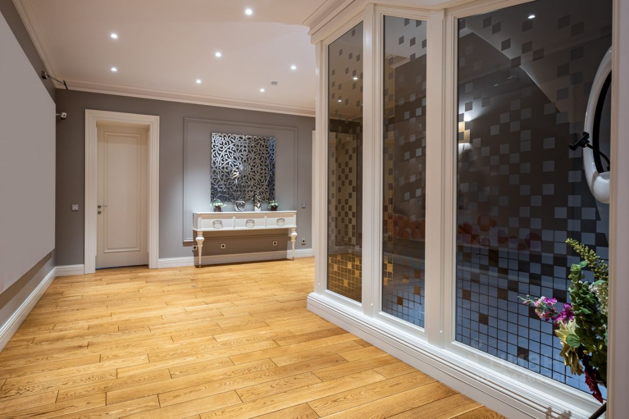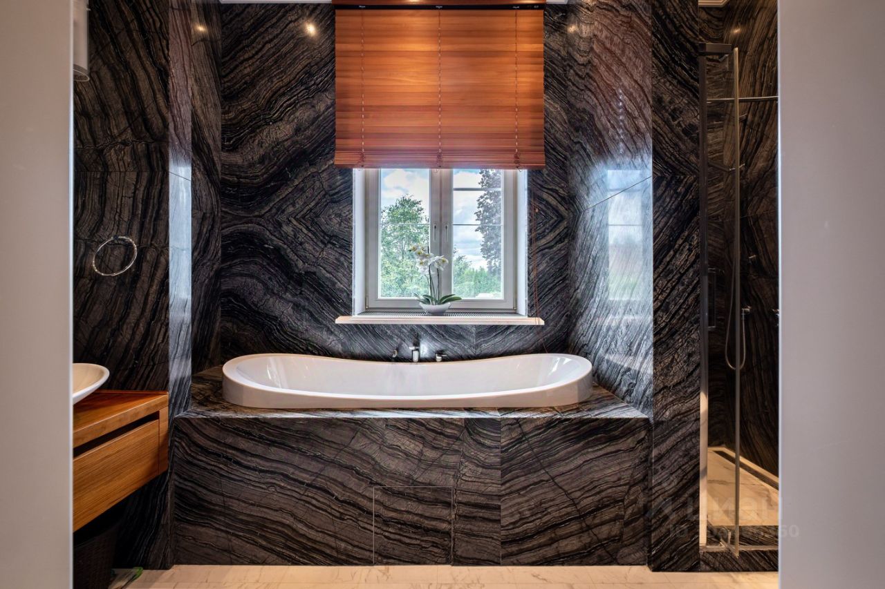 Отделка дома выполнена по дизайнпроекту Пол из паркета массив, и натурального мрамора. Подоконники каменные, окна противоударные стекла, аллюминевые. Лестница марш металлоконструкция, ступени лестничного марша отделаны доска массив. Вся мебель из массива, встроенные шкафы, двери. Техника от известных производителей.