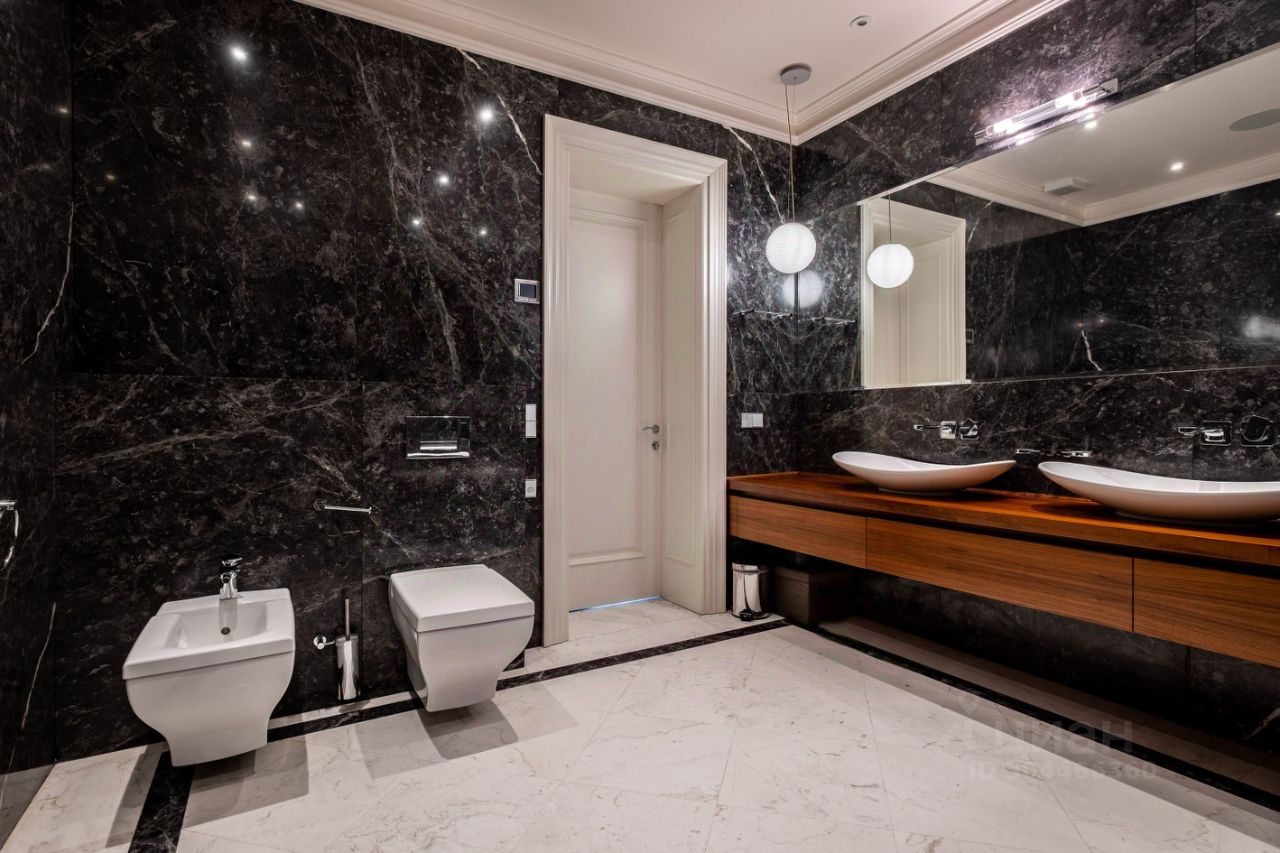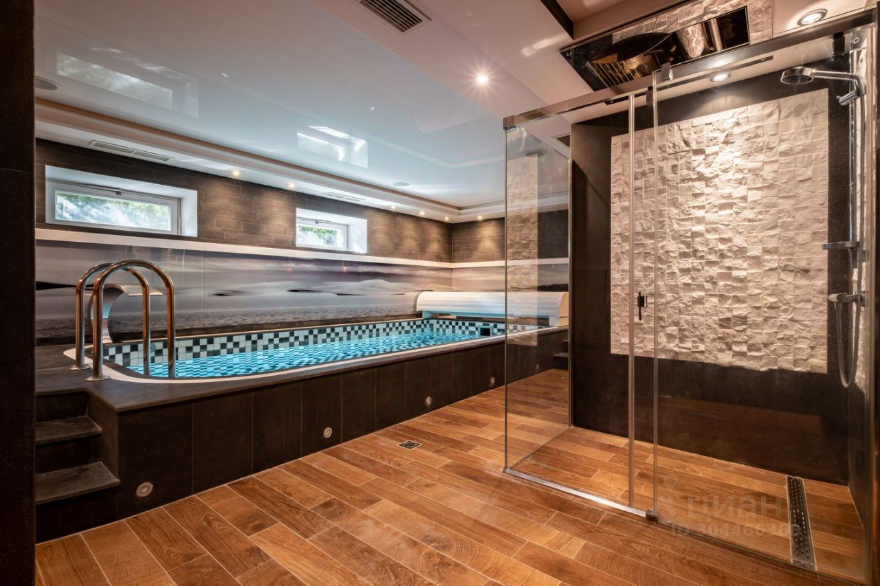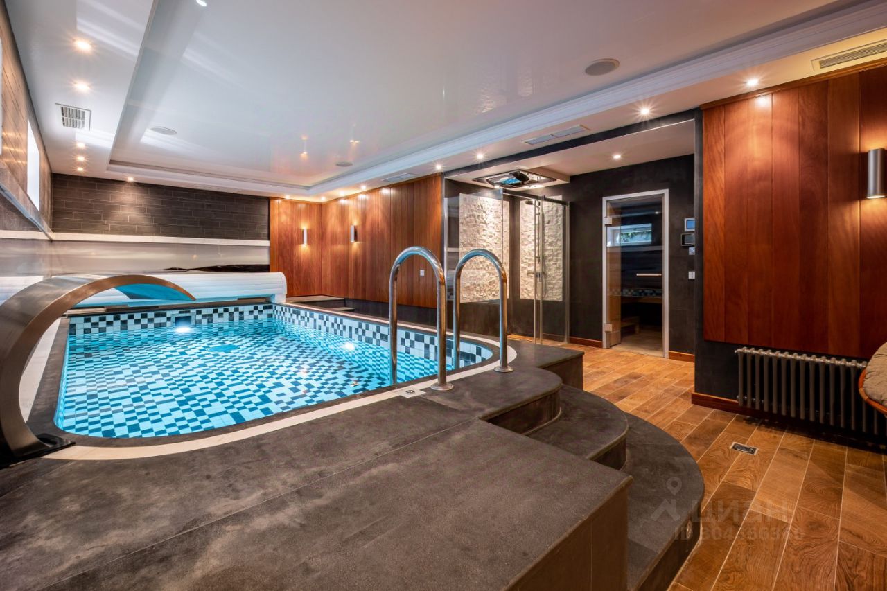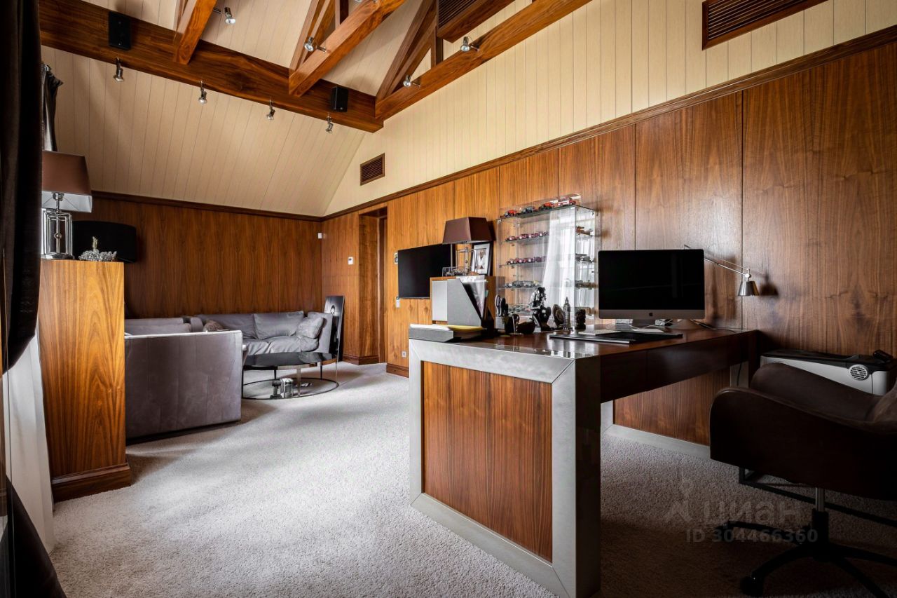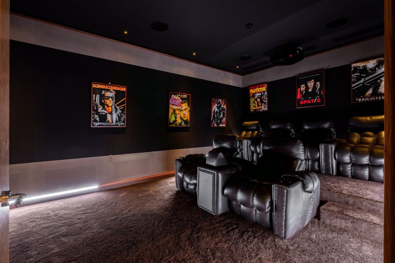 Цоколь: SPA-зона (турецкая и финская сауны, ледяной душ, кабинет релакс с массажным столом, санузел, бассей, бильярдная, хозяйственная комната, серверная, оружейная, профессиональный домашний кинотеатр, тренажерный зал. Из цоколя проходит подземная галерея в гараж.