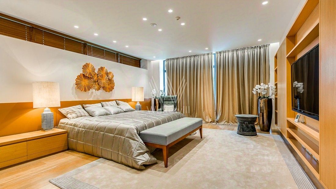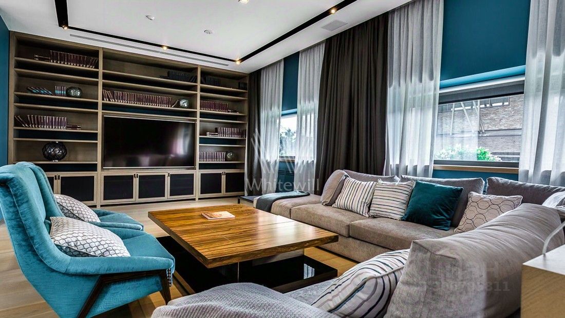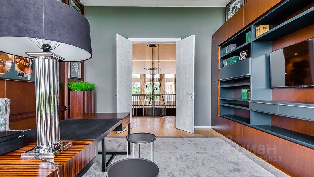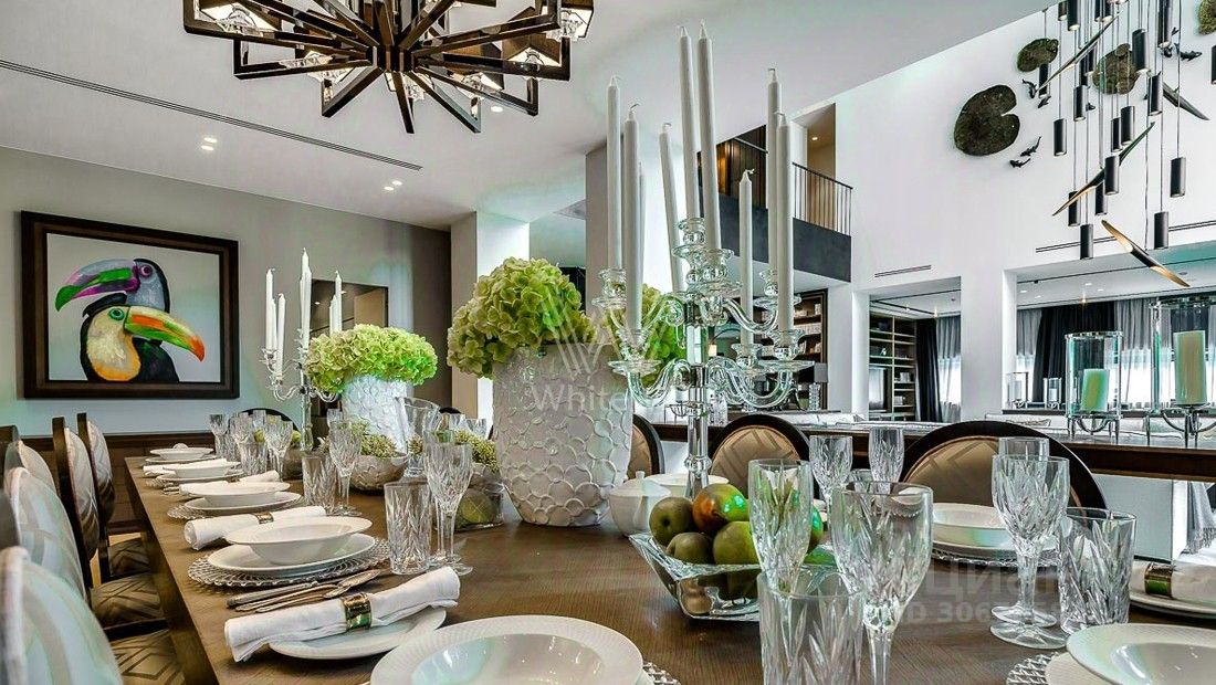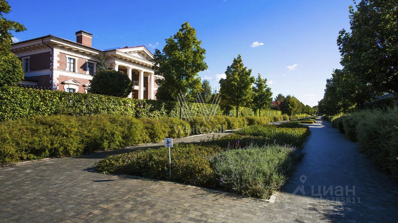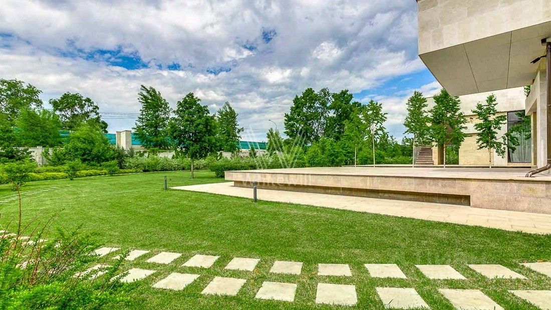 Жуковка 21. Просторная загородная резиденция в стиле американского архитектора Френка Ллойда Райта площадью 1509 м² построена на открытом участке 50 соток. Дом со множеством открытых террас облицован натуральным камнем песочного оттенка. В первый этаж встроен гараж для машин. Представительная резиденция оформлена в современном стиле, мебель и аксессуары подобраны из дизайнерских коллекций. Главная гостиная дома имеет панорамное двухуровневое остекление. Кухня, санузлы, гардеробные оборудованы техникой и мебелью. На участке выполнили ландшафтный дизайн, засеяли газон, дорожки вымостили плиткой, посадили декоративные кустарники и молодые березы.
