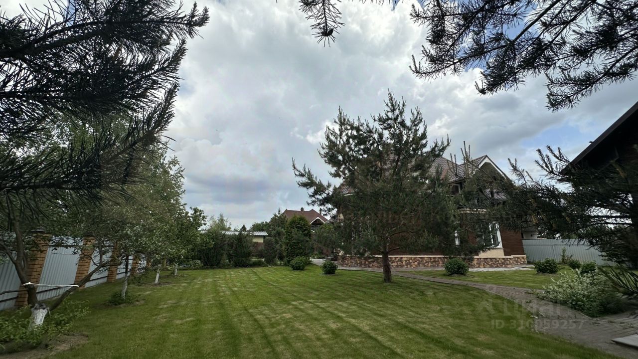 Забор из профнастила с кирпичными столбами, электроворота. На участке газон с автополивом, высажены высокорослые деревья (сосны, ели), вечно зеленые кустарники, розы. Имеются плодовые деревья. Автополив участка.