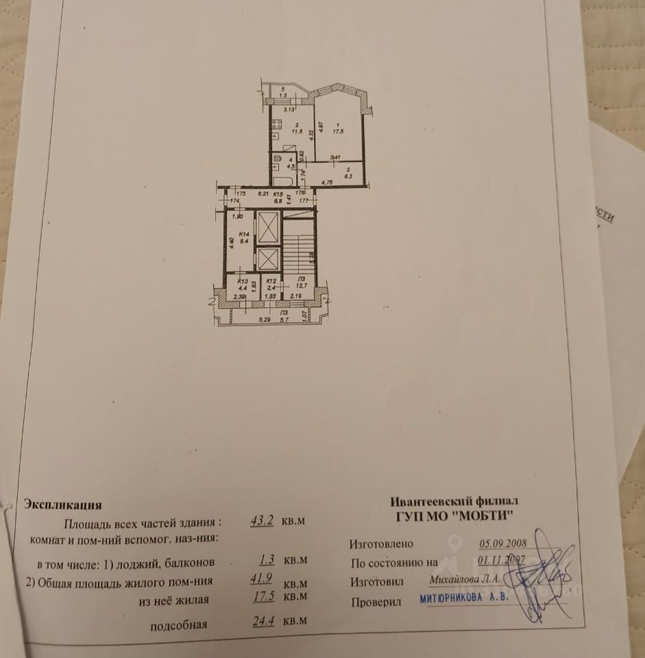 В шаговой доступности от ж.д.станции Ивантеевка 7 м.п. продается 1 ком.квартира,общей площадью 43.2 кв.м.( с лоджией).