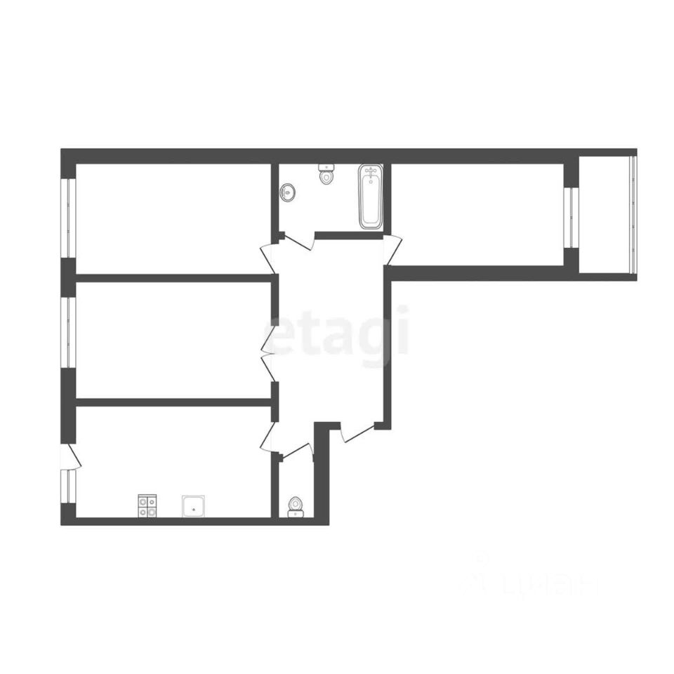 Все комнаты (11, 16 и 12 кв.м) изолированные. Большая кухня, при продаже остается кухонный гарнитур. Два санузла. Застекленная лоджия.