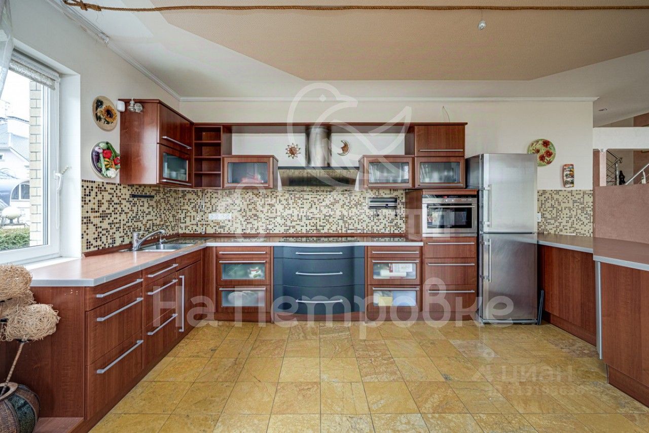 Вы можете войти в дом через парадный вход или из удобного гаража на два автомобиля, но в любом случае Вы пройдете через отделенное, для сохранения тепла, двумя дверями помещение лестницы или прихожей. В холле расположен гостевой санузел и постирочная, лестница на второй и цокольный этажи. Первый этаж - зона совместных трапез и семейного отдыха. Просторная обеденная зона рядом с кухней, светлая гостиная с окнами на юг и восток со вторым светом и выходом на террасу (патио), создают атмосферу уюта и тепла. Кухня производства Германии оборудована качественной бытовой техникой. На первом этаже так же расположена спальная комната с индивидуальной ванной комнатой и гардеробной. Поднявшись по удобной лестнице на второй этаж, вашему вниманию откроются: большая мастер-спальня и еще две комнаты, одна из которых оборудована как кабинет. Каждая из трех комнат примыкает к индивидуальной ванной комнате и гардеробной комнате, что создает комфорт для каждого члена семьи. Цокольный этаж состоит из нескольких пространств: зона отдыха рядом с просторной второй кухней, так же оборудованной бытовой техникой и винным шкафом, зал с бильярдом, банное пространство (ванная комната, джакузи и баня Маслова, с облицовкой из травертина), спортивный зал, еще одна гардеробная комната и два технических помещения (отопление, водоснабжение, очистка воздуха от пыли, электричество, централизованная аудиосистема). Просторный гараж на два автомобиля, с автоматическими воротами. Техническое помещение с тихим, но мощным генератором для автономного резервного энергоснабжения. Коммуникации: электричество 15 кВт, магистральные газ и канализация, питьевая вода из собственной скважины. Отопление дома очень экономичное, теплым воздухом. Благодаря этому плюсу стоимость обогрева (газ), в среднем, всего 3000 рублей в месяц. Система кондиционирования, отопления воздухом и система очистки воздуха (да-да, в доме чисто, нет пыли!), с вынесенными на участок блоками кондиционеров. Интернет оптическое волокно, вы можете без проблем работать из дома. Приятным бонусом - централизованная аудиосистема с трансляцией по всему дому и на участок.