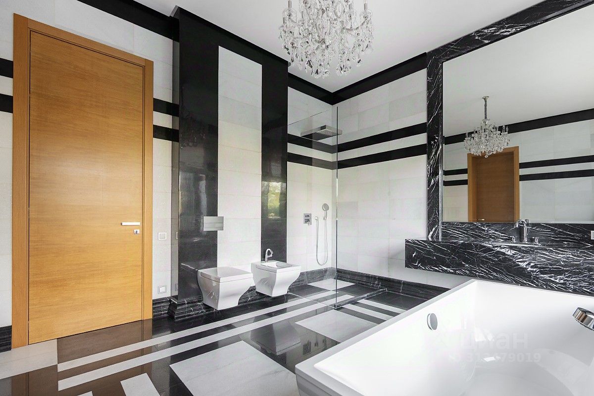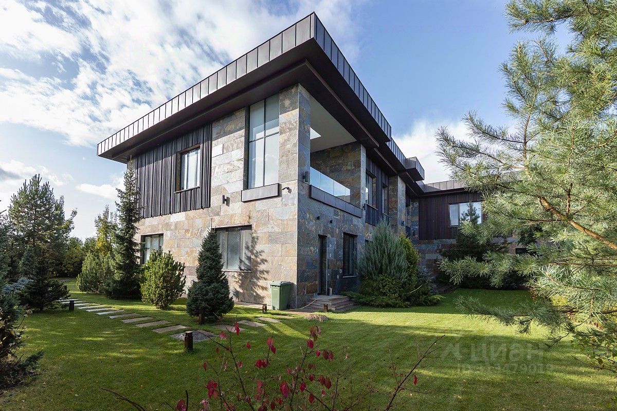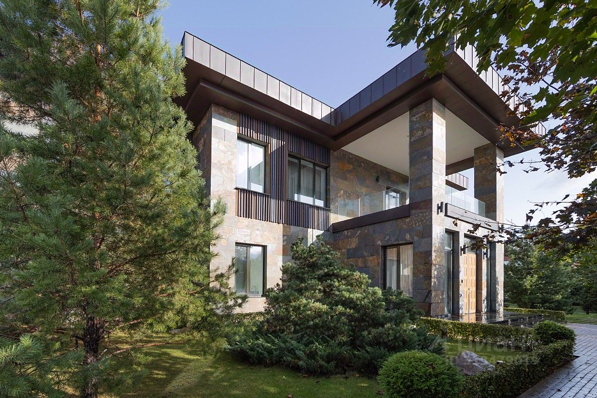 Дом выполнен в современном стиле с учетом передовых технологий. Планировка: 1 этаж: прихожая, с/у, гостиная, гостиная каминная, коридор, массажная, сауна, постирочная , с/у, кабинет, кинотеатр, бассейн, столовая, зона хранения, кухня поварская, винная комната, кухня. 2 этаж: 3 спальни с ванной комнатой, гардеробной и выходом на балконтеррасу, 2 спальни с ванной комнатой и гардеробной, хозяйская спальня с 2 ванными комнатами и гардеробными.