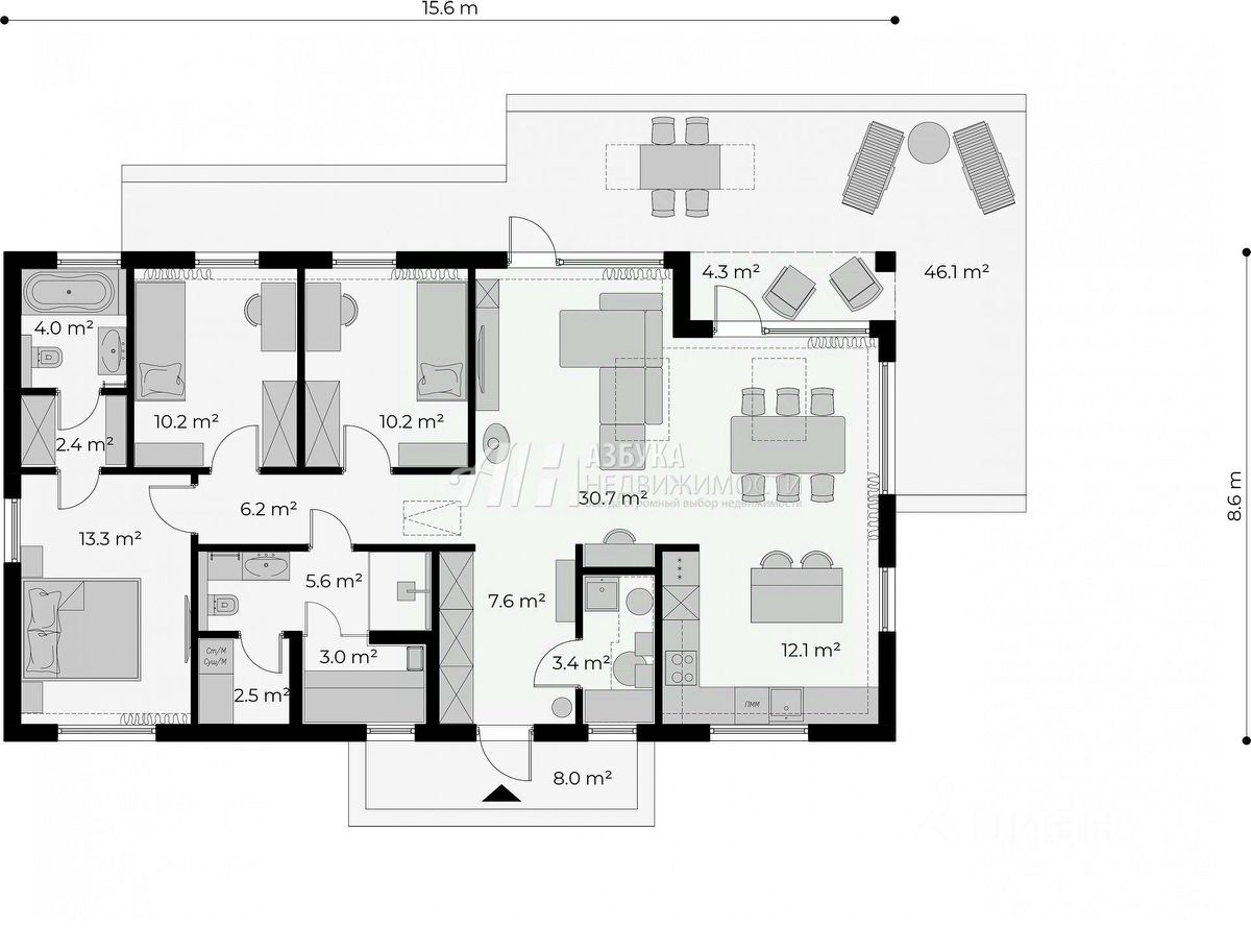 РАБОТАЕМ С ЭСКРОУ СЧЕТАМИ. РАСПОЛОЖЕНИЕ: в селе Марфино, что в 20 км от Москвы по Дмитровскому направлению. ПЛАНИРОВКА И МАТЕРИАЛЫ: Светлая кухня-столовая 12,1 кв.м объединена с гостиной 30,7 кв.м, создавая пространство для уютных встреч. Три спальни 10,2 кв.м, 10,2 кв.м и 13,3 кв.м обеспечивают комфорт каждому члену семьи. Функциональный холл 6,2 кв.м соединяет помещения, а прихожая 7,6 кв.м удобно зонирует входную зону. Два санузла 4 кв.м и 2,5 кв.м, постирочная 3 кв.м и гардеробные 2,4 кв.м и 5,6 кв.м добавляют удобства. Идеальный баланс стиля и практичности!
