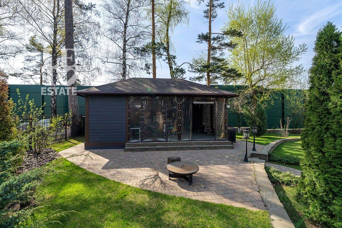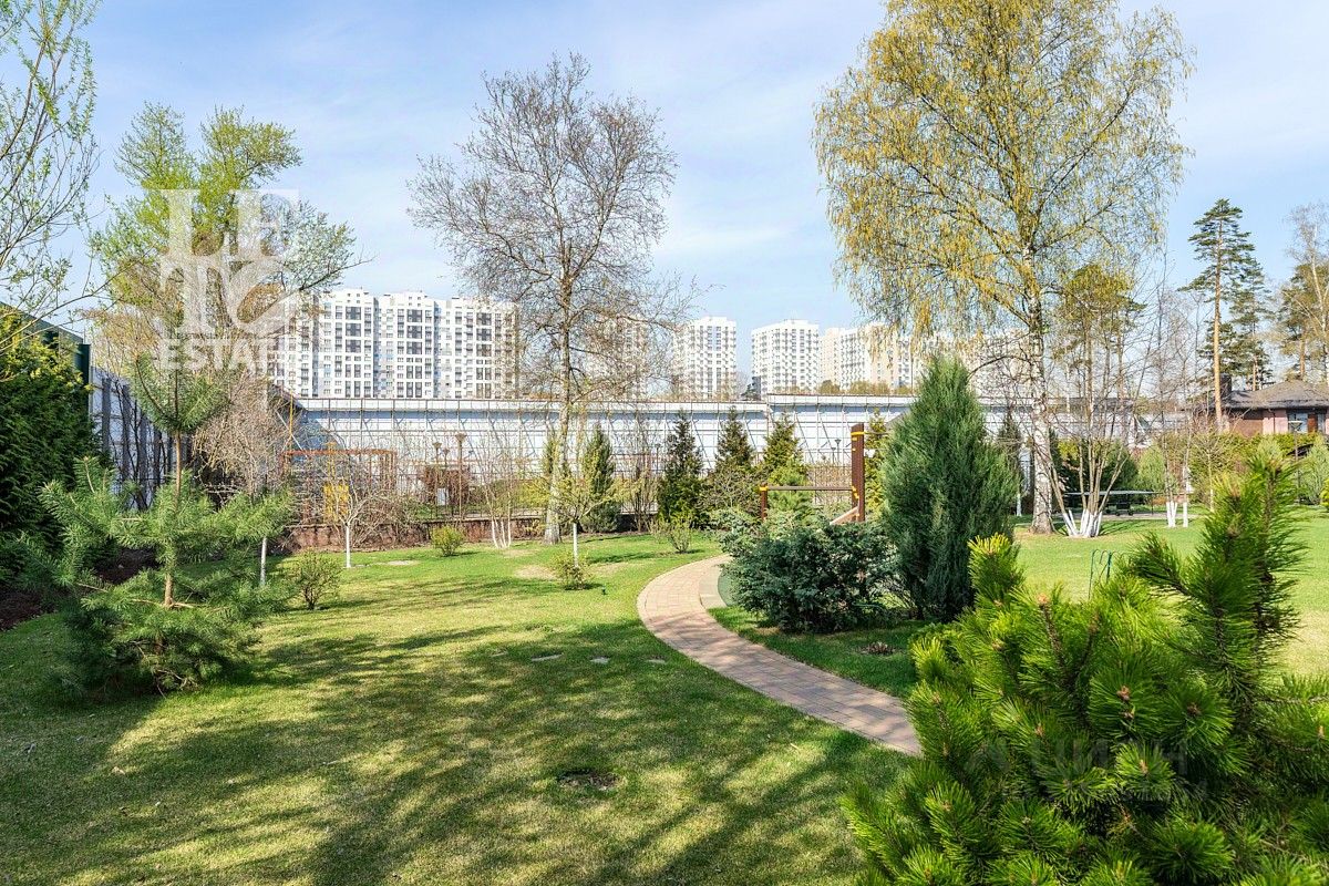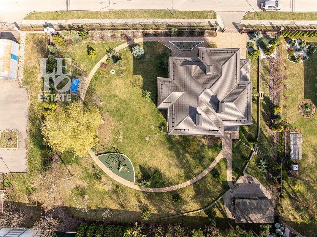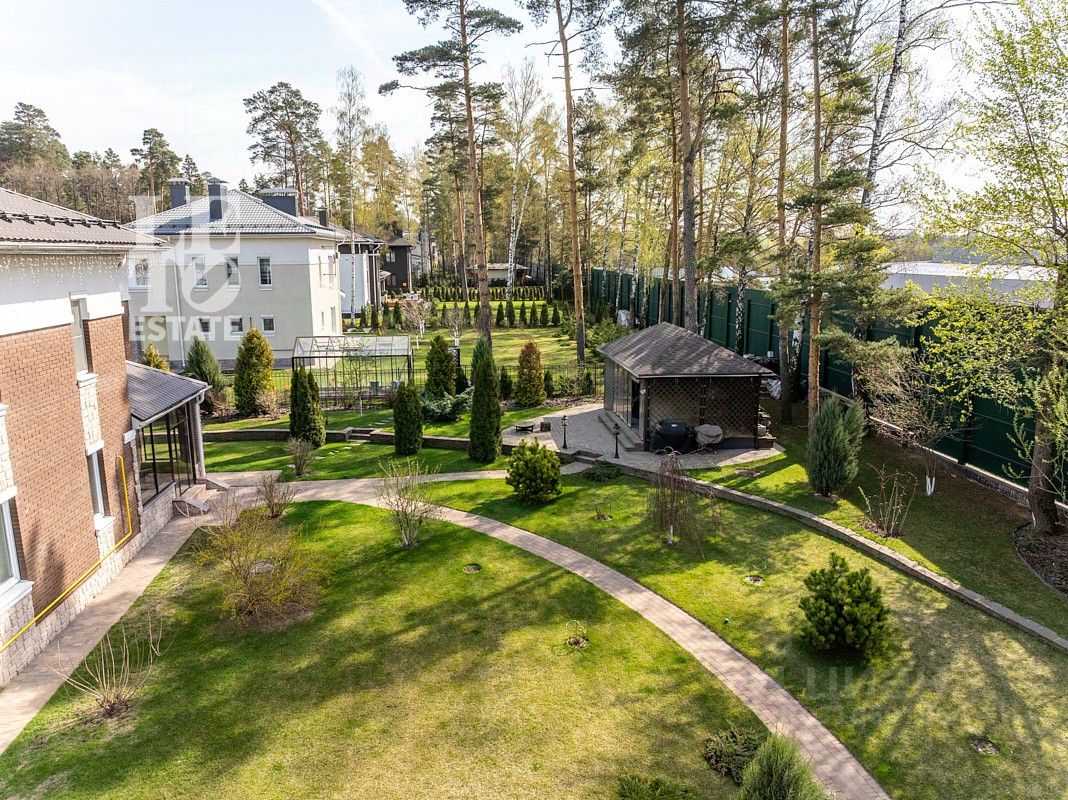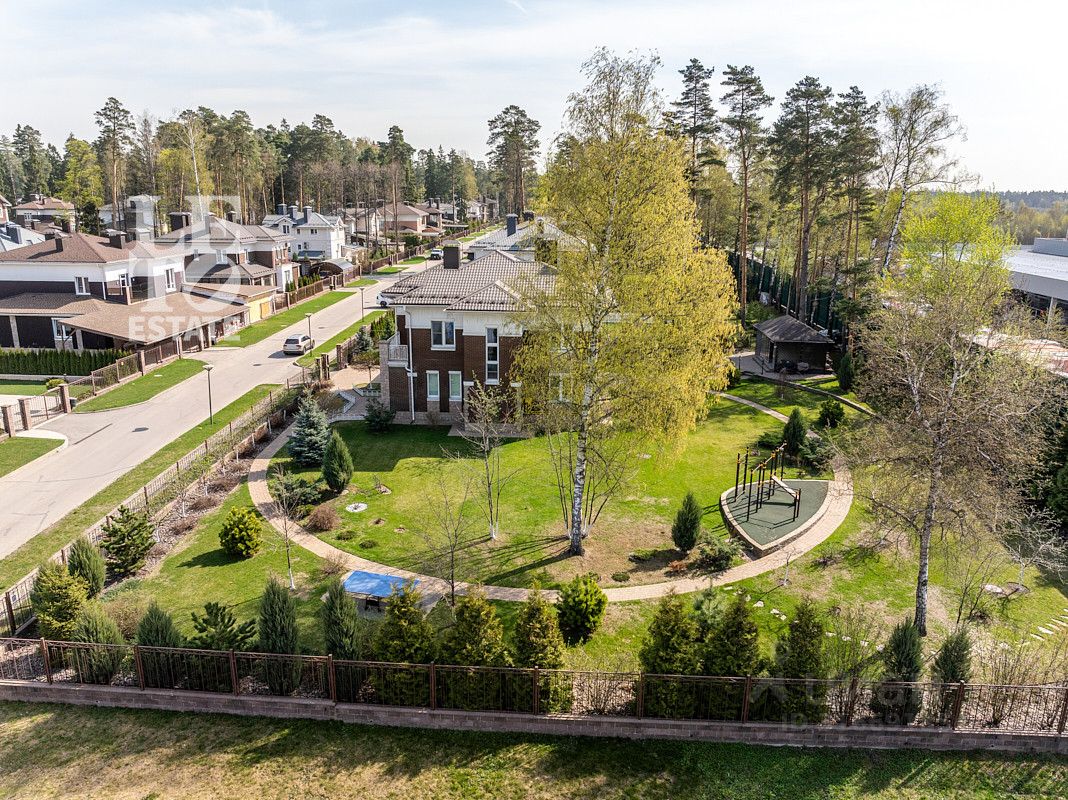 Просторный участок 22.67 сотки правильной формы оформлен с заботой о природе: здесь зеленеет газон, высажены плодовые деревья и кустарники, выложены аккуратные дорожки, установлено освещение и система полива. Для активного отдыха предусмотрена спортивная площадка. Территория участка огорожена забором, въездные ворота оснащены электроприводом. Ланшафтный дизайн выполнен срого по разработанному проекту.