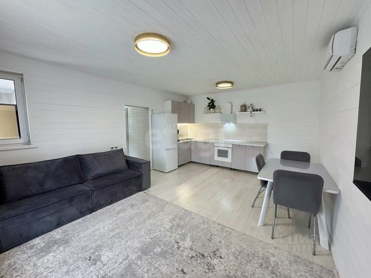 Дом полностью готов к проживанию! Просторная кухня-гостиная, 2 спальни, совмещенный санузел с ванной, теплые полы.