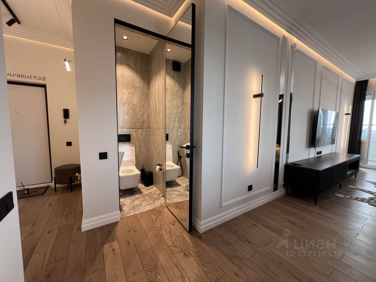 Представляю вашему вниманию стильную квартиру формата 3-евро. Высокие потолки 2.8 метра со скрытой подсветкой, обеспечивают ощущение простора.
