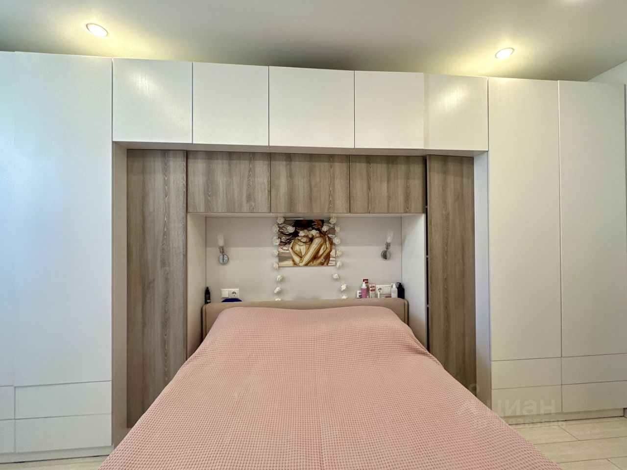 Квартира очень чистая и уютная, с современной встроенной мебелью.