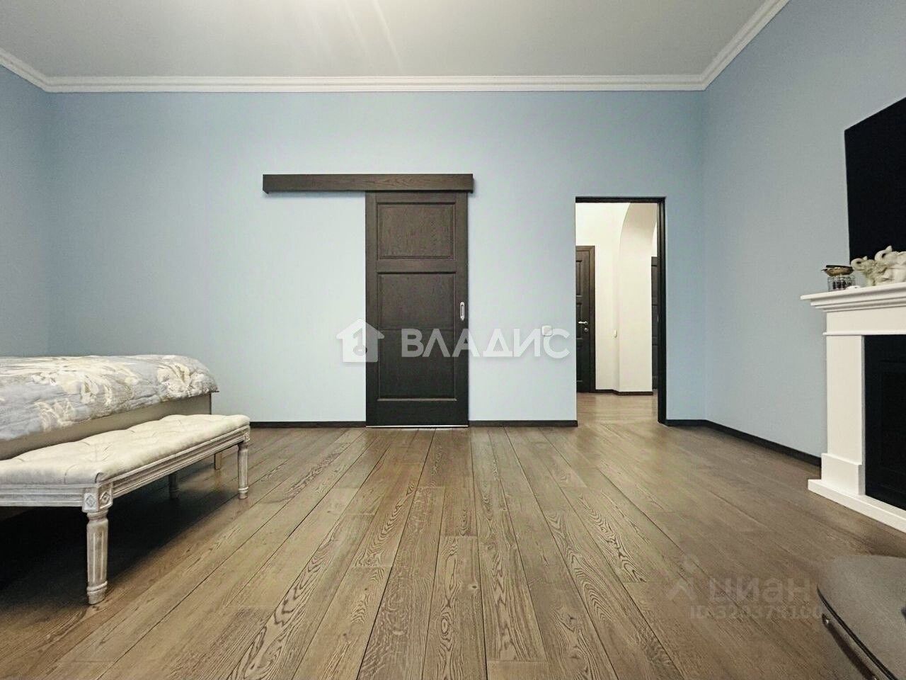 Мебель в доме, выполнена из массива дерева, дубовые межкомнатные двери, напольное покрытие также из натурального дуба, камин выложен мраморной плиткой ручной работы, встраиваемая кухонная техника, система очистки воды, конвекционное отопление, система кондиционирования, система видеонаблюдения.