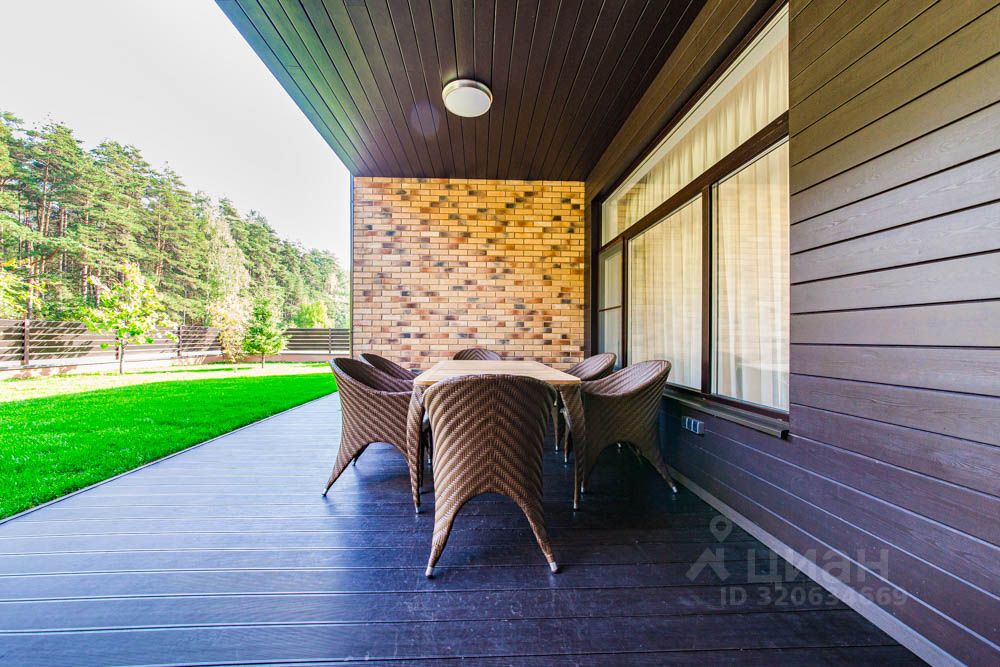 О ДОМЕ: Материал строительства - монолит, облицован - клинкерная плитка и натуральная лиственница Фундамент - монолитная плита Кровля - мембранная, 30 см утепление, уклон кровли для стока воды Материал полов - керамогранит - система тёплых полов, паркетная доска Высота потолков - 3.20 м.