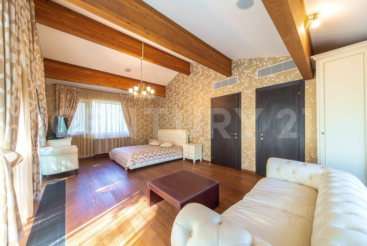 Четыре отдельных жилых пространства (110+60+50+50 м2) с мастер спальнями, гардеробами, санузлами и собственными выходами на веранды соединены просторной гостиной с камином, общей площадью 120 м2. Большой светлый кабинет создает комфортную обстановку для работы. В отделке использовались только высококачественные, натуральные материалы. Вся мебель от ведущих европейский производителей изготавливалась по индивидуальному заказу.
