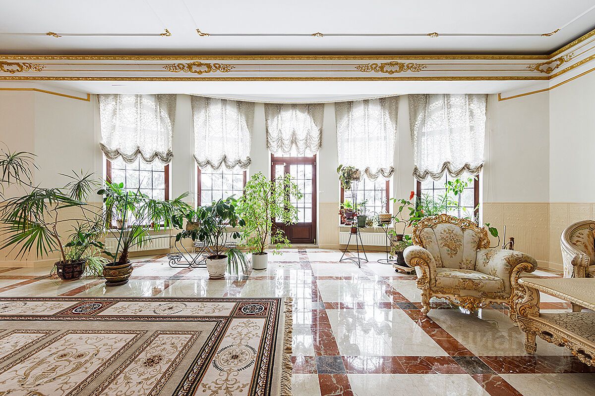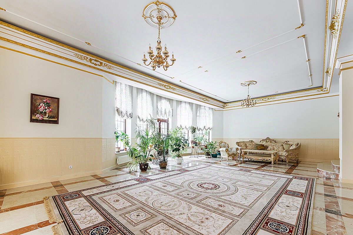 Карнизы с лепниной, продуманные детали интерьера. В доме много окон и света.