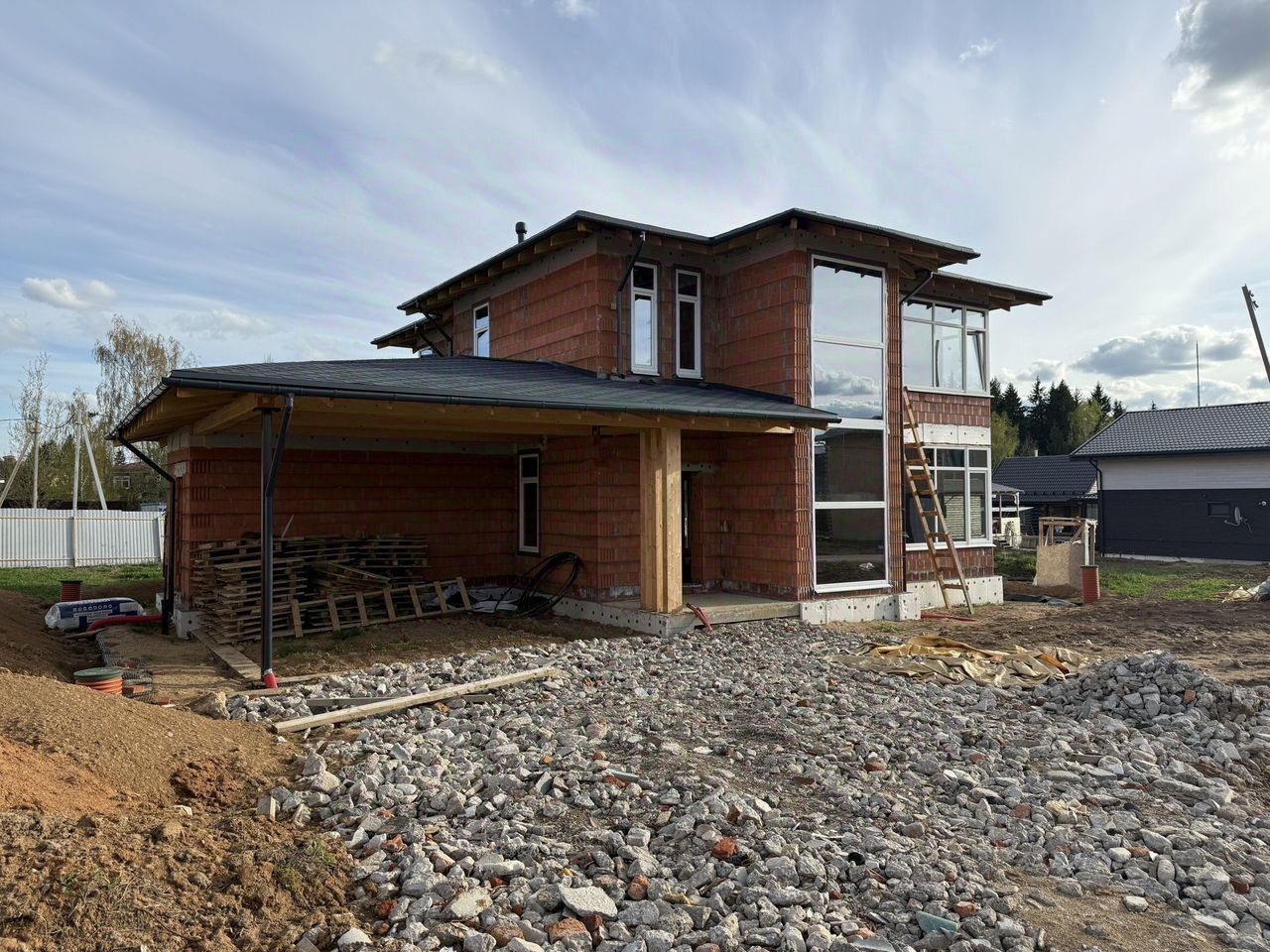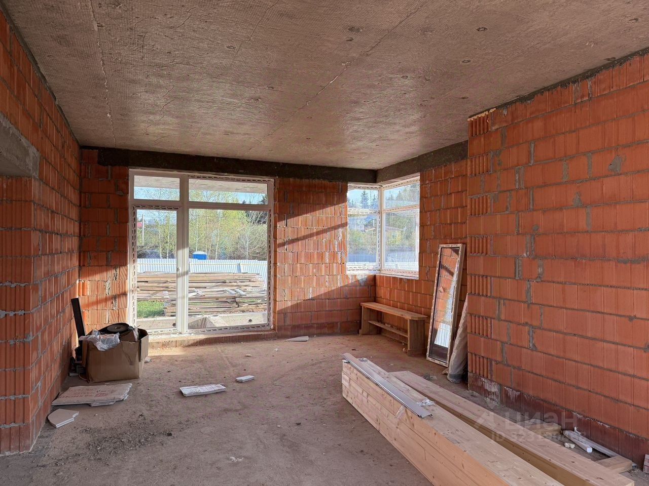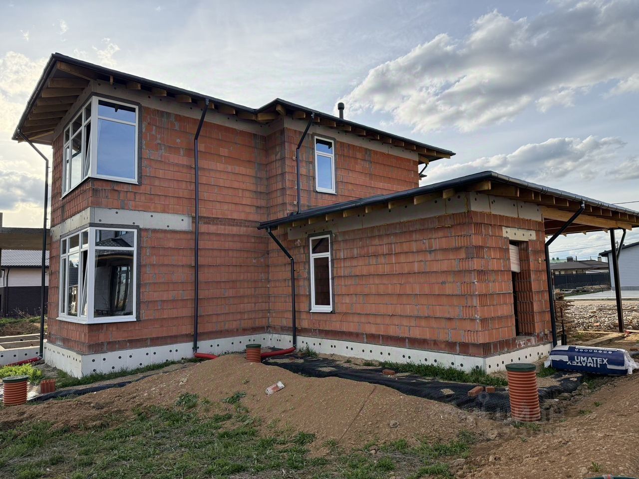 Строил проверенный застройщик АПС ДСКА в 2024 году. Стены-блоки Porotherm 38 см не требующей утепление. Фундамент- Монолитная железо бетонная плита на ребрах жесткости.