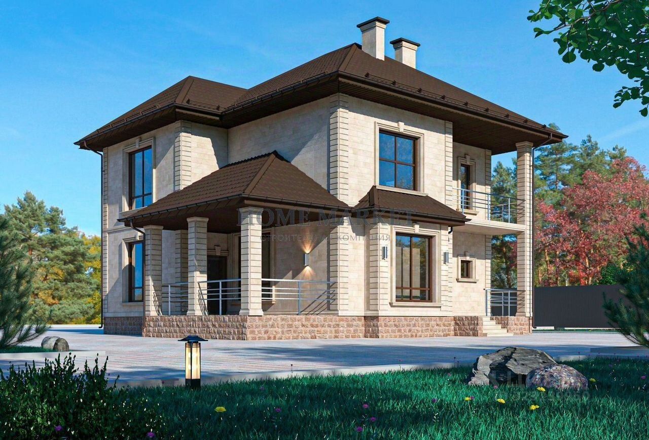 Дом построен с использованием современных и надежных материалов: газосиликатные блоки, фасад из благородного дагестанского песчаника, прочный ленточный фундамент, железобетонные перекрытия и долговечная кровля из металлочерепицы.
