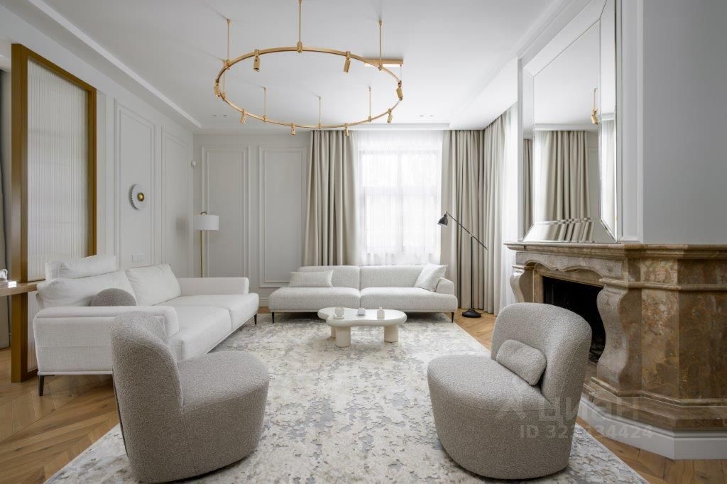 5 спален, уютные гостиные с камином и панорамными окнами, кухня-столовая, кабинет, детская, игровая, гардеробные, помещения для спорта, комната для персонала.