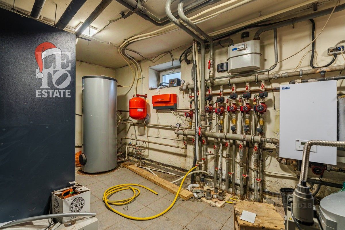Тщательно продуманные и идеально выполненные инженерные коммуникации: магистральный газ, канализация, скважина, электричество, центральная система кондиционирования и вентиляции чиллер-фанкойл. Теплый водяной пол во всех жилых зонах и радиаторы под каждым окном обеспечат уют и тепло в любое время года. Отопление дома и бассейна обеспечивается двумя газовыми котлами Viessmann на 170 кВт.