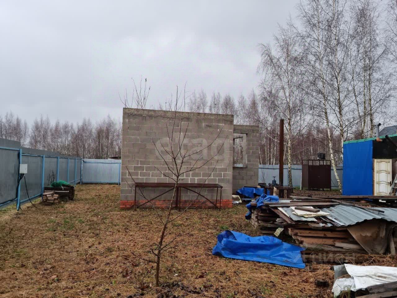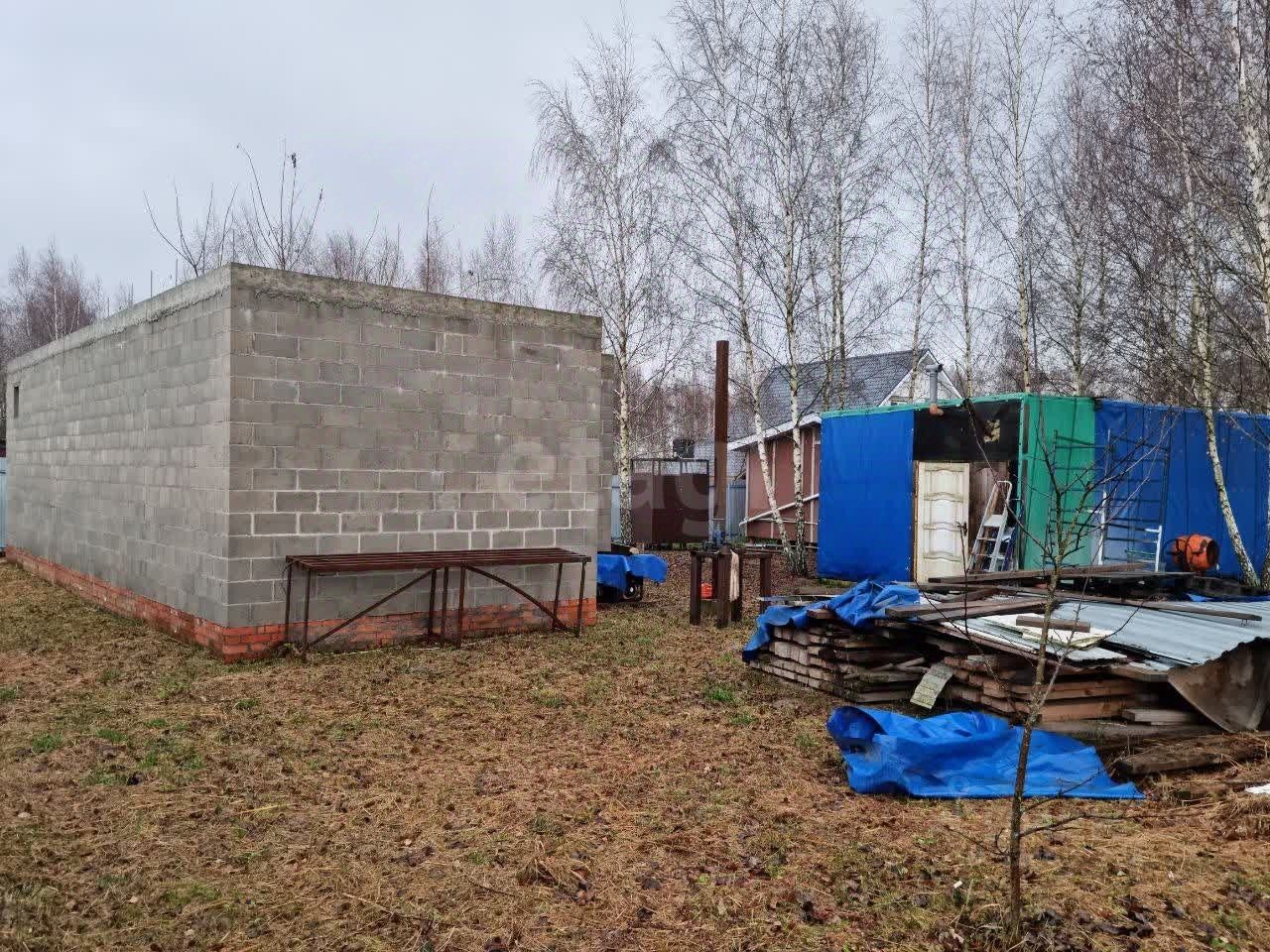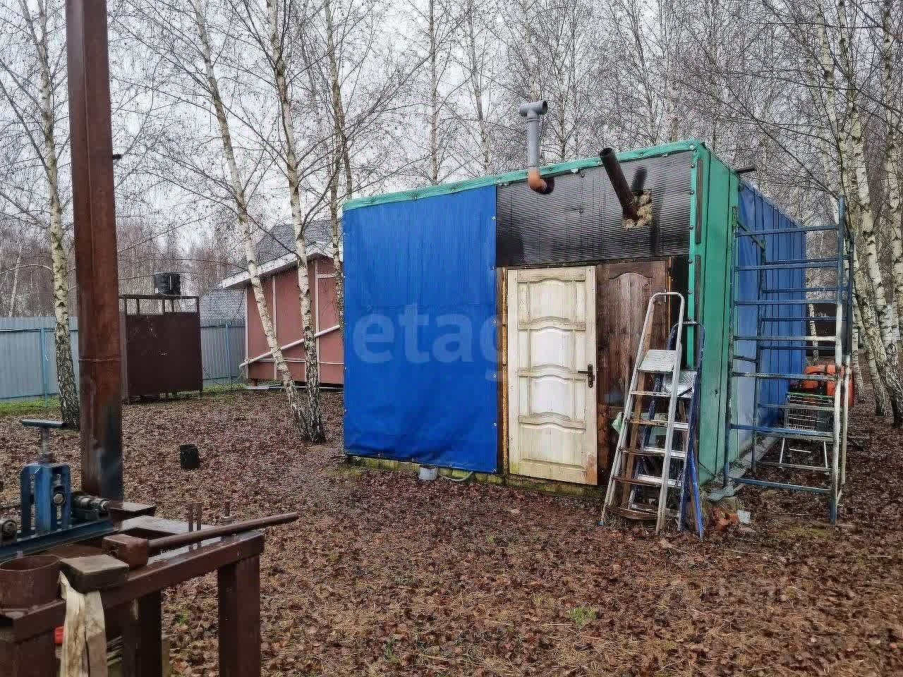 На участке маленький домик , три вагончика для хранения инвентаря и бытовой утвари, баня и большая мангальная зона, летний туалет.