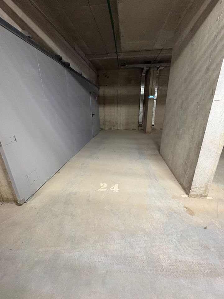 -1 этаж, машиноместо 24, прямо напротив въезда и поста охраны. С двух сторон отделено стеной.