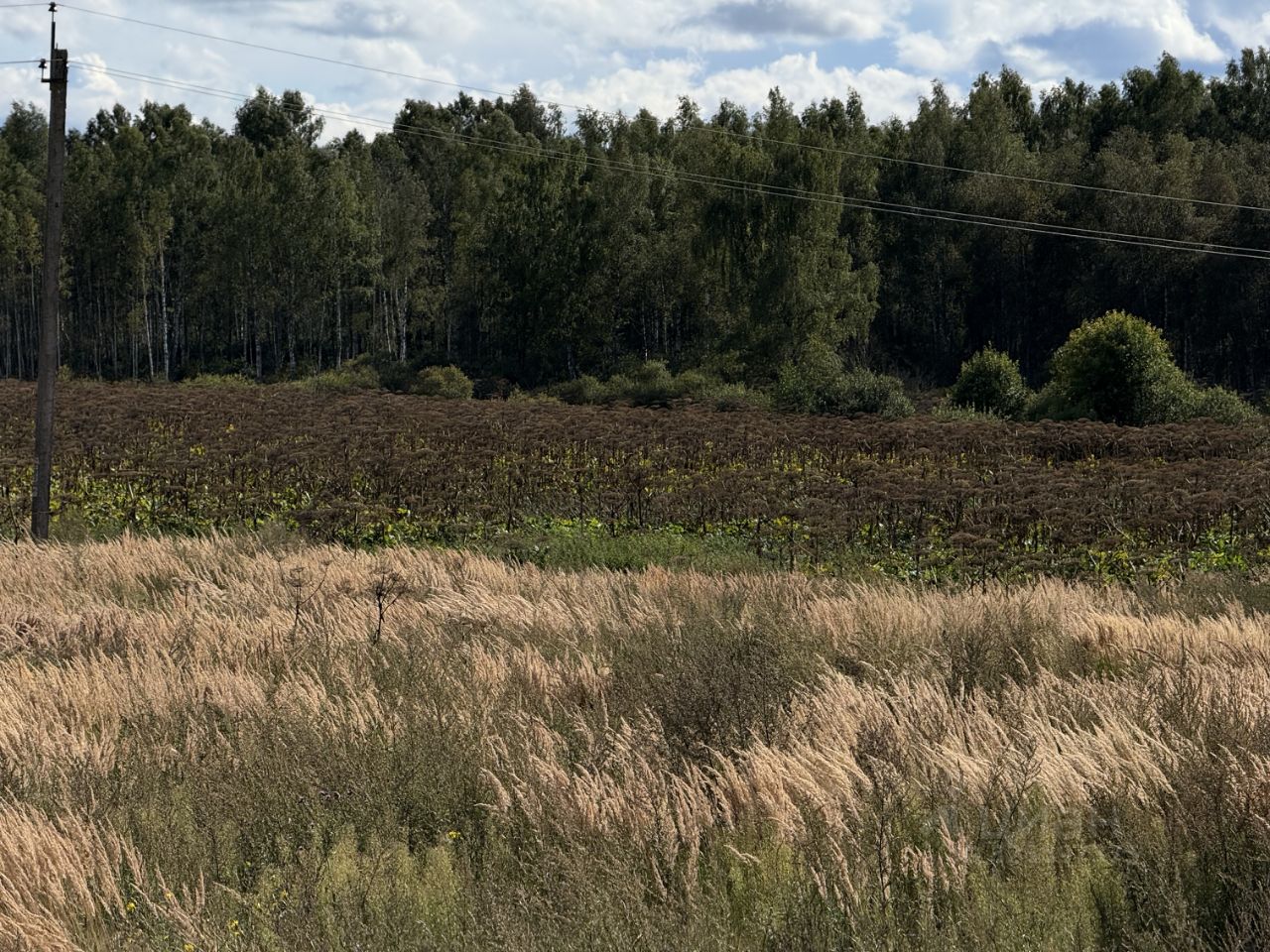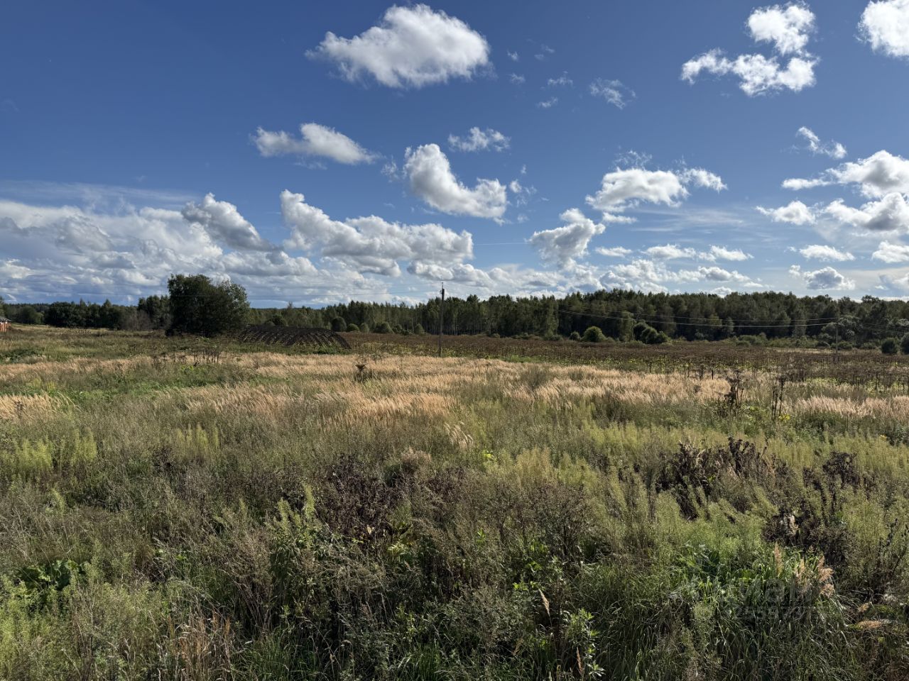 Участок представляет собой поле + лес. На участке есть пруд.