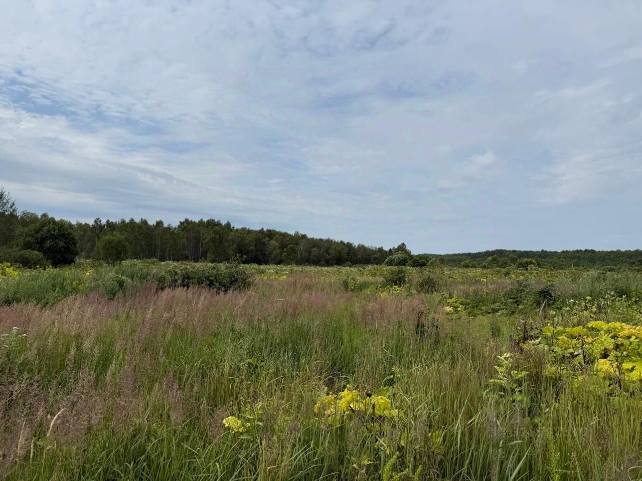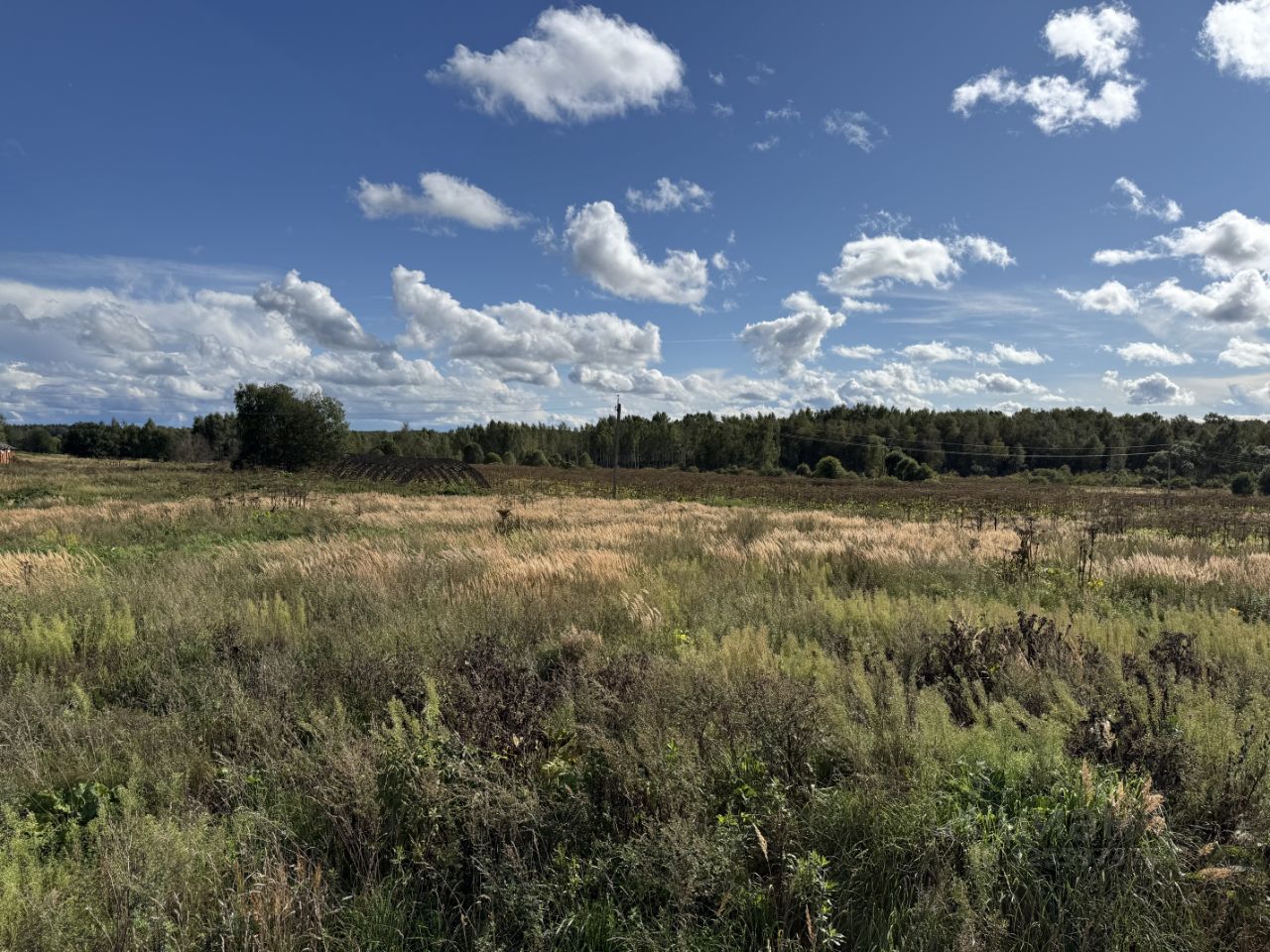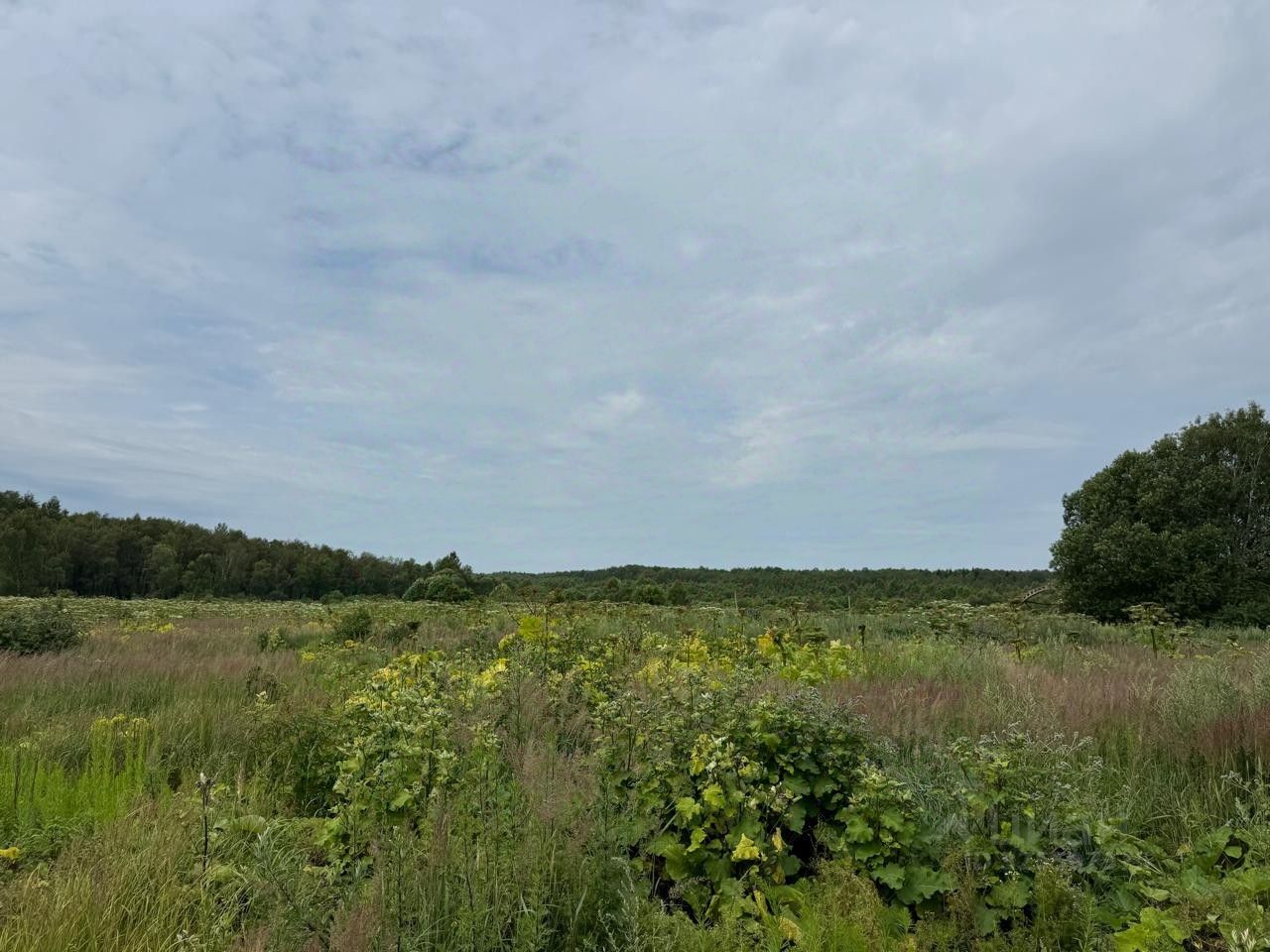 Участок представляет собой поле + лес. На участке есть пруд.