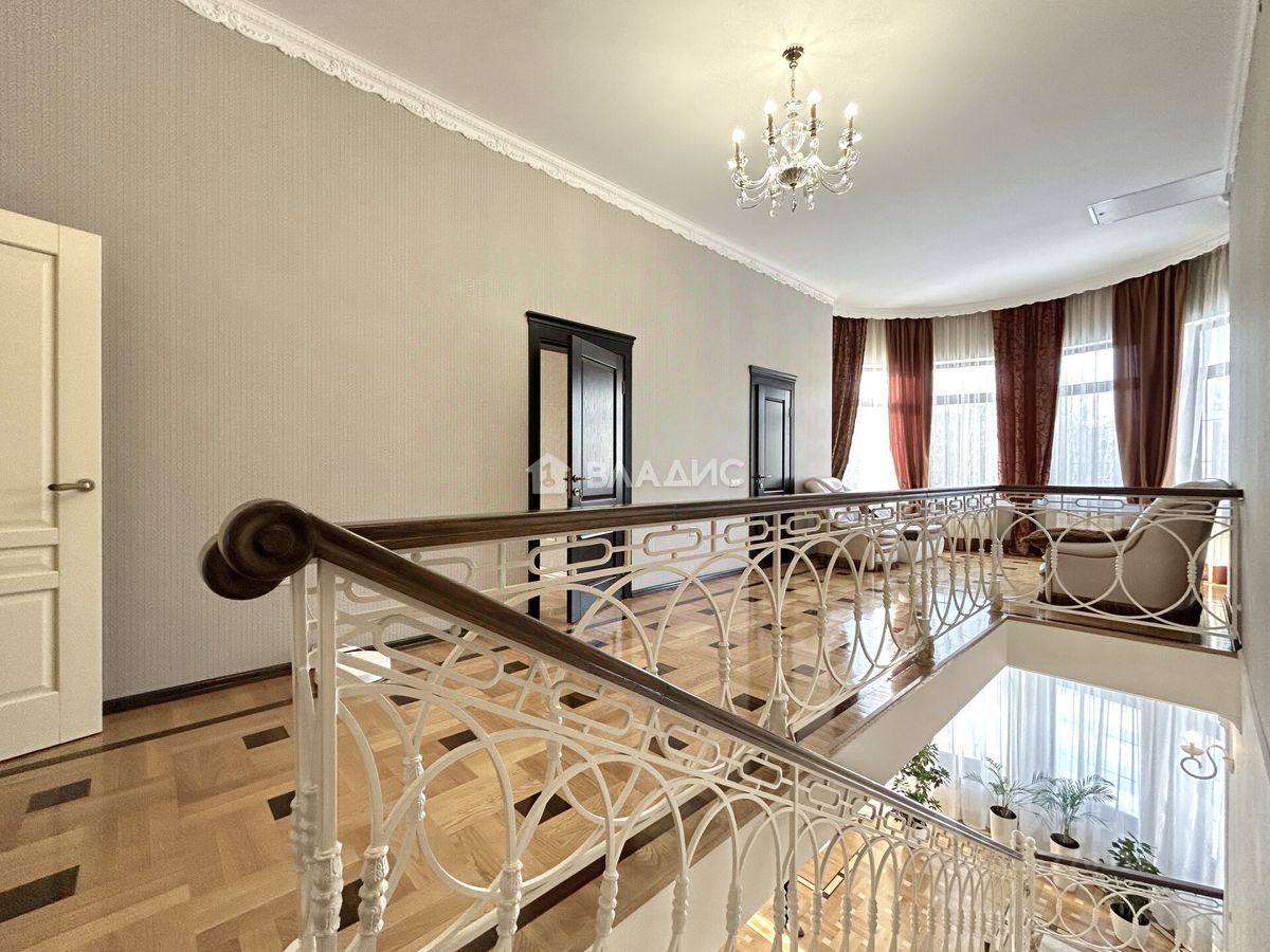На втором этаже расположена спальня хозяев дома со своей ванной и комнатой и гардеробом, здесь же расположены 3 независимые спальни с прекрасными видами из окон, просторная ванная комната с ванной у окна, полукруглая комната-кабинет.