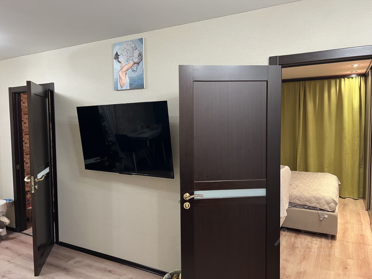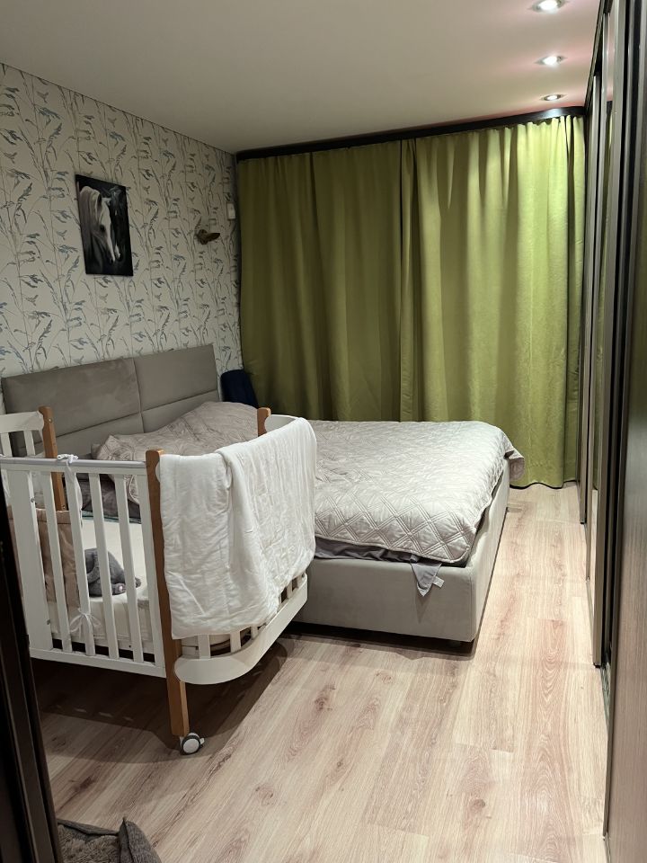 В квартире остаются: кухонный гарнитур, варочная поверхность, духовой шкаф, встроенные шкафы в спальне и коридоре, шкаф в зале, кровать в детской, стол в детской.